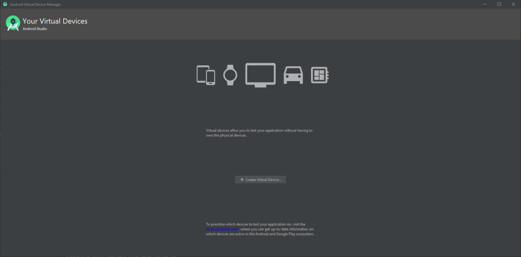 to open the AVD Manager (AVD stands for Android Virtual Device). You should see the following window.
