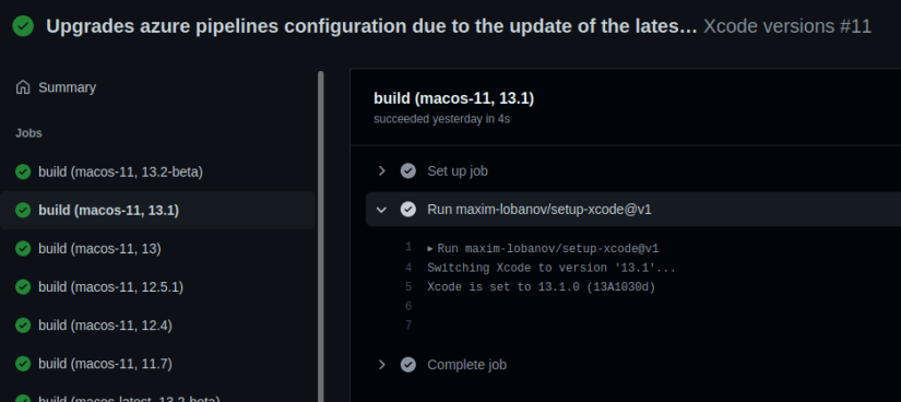 I will maintain those GitHub Actions processes when GitHub will update their environment images, so that we will always be able to use this repository as reference! So if you see a version of Xcode or an version of OSX missing, or a way to improve the GitHub Actions script, do not hesitate to create a new issue 😉